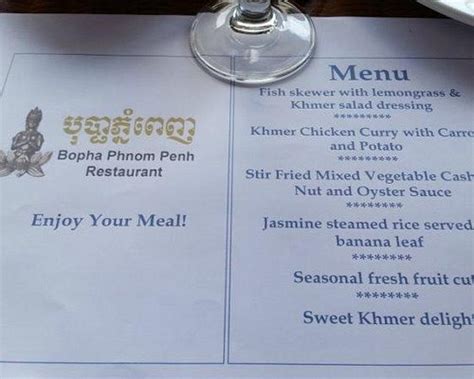 Bopha Phnom Penh Menu. 1,435 reviews #118 of 1,136.